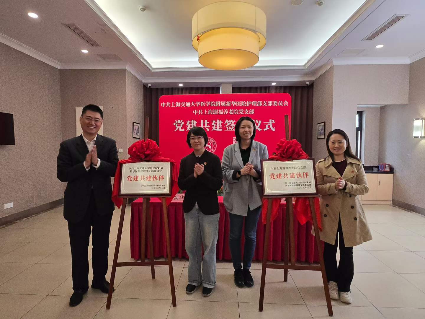 春和景明,共启新程。2026 年 3 月 30 日下午,中共上海遐福养老院党支部与中共上海交通大学医学院附属新华医院护理部支部委员会党建共建签约仪式在遐福养老院顺利举行,双方以党建为纽带、以服务长者为初心,正式开启医养融合、双向赋能的高质量发展新篇章。